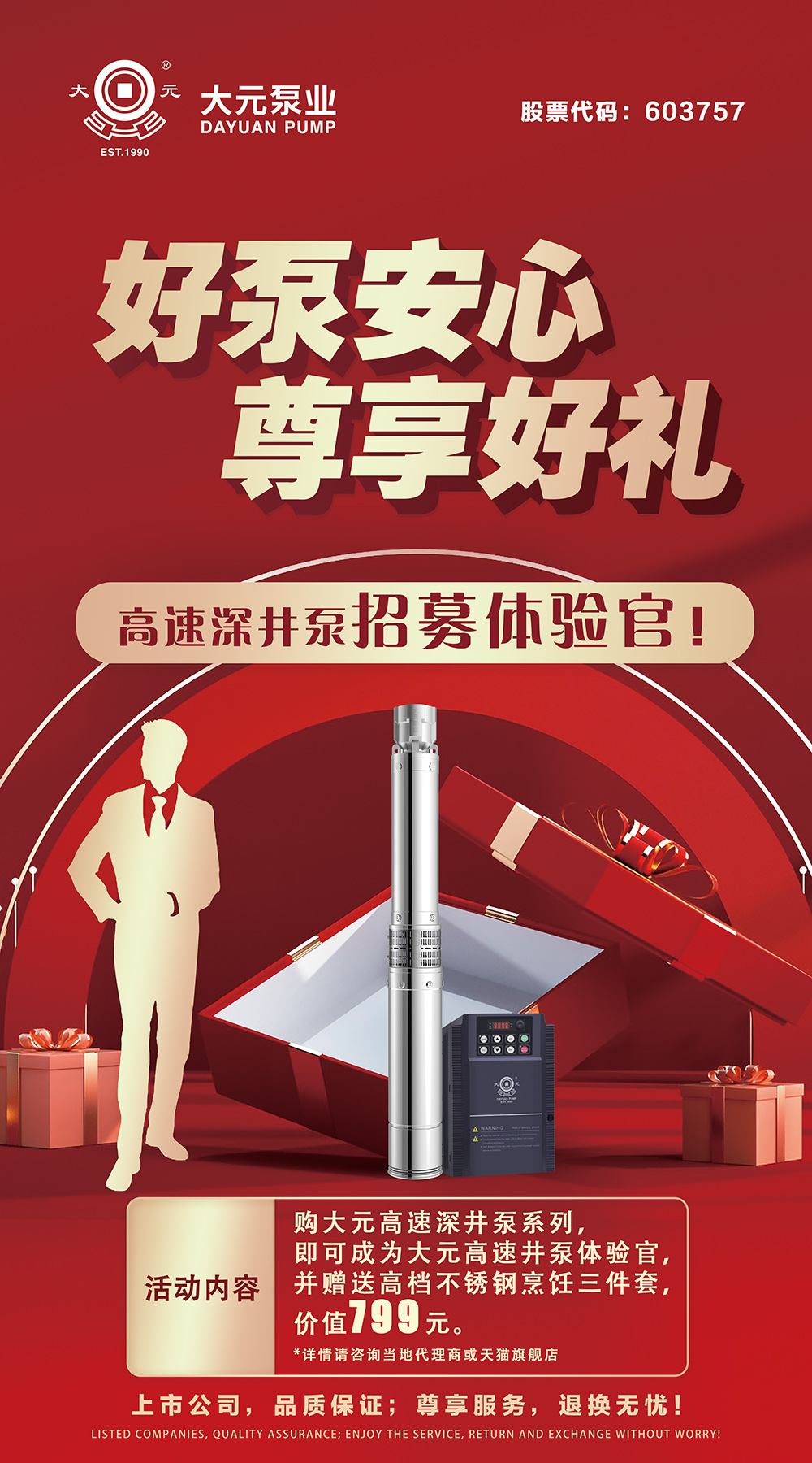 大元泵业新品体验官首次上线,2021第一期体验产品“大元泵业恒压节能外置变频高速泵”,上线一月成交量飙升,成交量同比增长900%。2022年,大元泵业会推出更多优质的新品体验活动,积极接受各方意见,全面推动大元泵业产品升级与发展。
